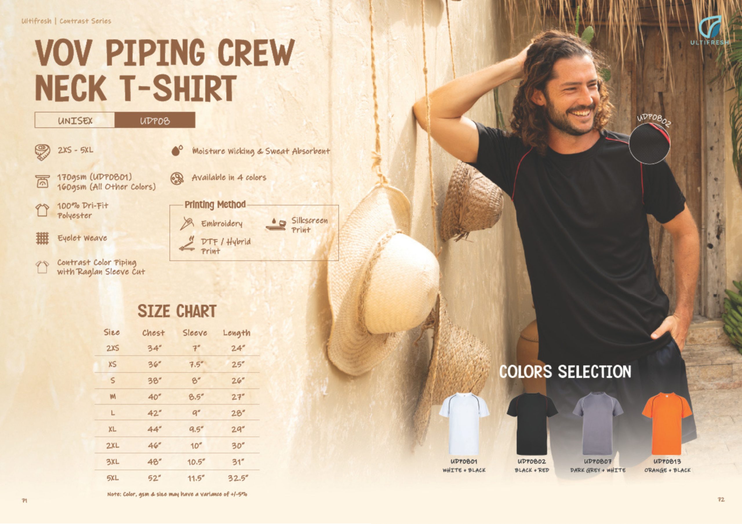 UDP08 is made from anti-odor and anti-bacterial fabric with contrasting piping on the collar shoulder. Fashionably cool and yet keep you cool and comfortable all day long.